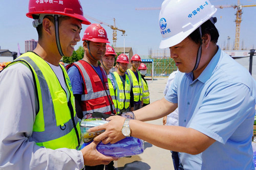 (禮泉訊)為切實(shí)做好高溫天氣安全生產(chǎn)和防暑降溫工作,體現(xiàn)“人民至上、生命至上”的員工關(guān)懷理念,7月17日,中鐵一局建安公司禮泉縣第一中學(xué)改擴(kuò)建項(xiàng)目(一期)EPC工程總承包項(xiàng)目部以“夏送清涼保安康,砥礪奮進(jìn)新征程”為主題,在項(xiàng)目部駐地開展了“夏送清涼”關(guān)愛職工慰問活動,為堅(jiān)守在施工一線的近140名室外工作人員送去防暑降溫物品,在炎炎夏日用實(shí)際行動關(guān)心關(guān)愛企業(yè)職工及外協(xié)隊(duì)伍人員身體健康。