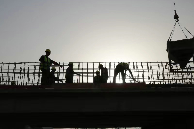 隨后,全體參建者連續(xù)奮戰(zhàn)了20天,向時(shí)間要進(jìn)度。每天八點(diǎn)開工、中午不停工、晚上奮戰(zhàn)到十點(diǎn),天天如此。為最大限度給日間墩柱混凝土澆筑預(yù)留時(shí)間,混凝土拌和站、預(yù)制梁場(chǎng)、鋼筋廠、模板綁扎等都安排在夜間進(jìn)行,每位參建者的眼中都熬出了血絲,經(jīng)過大家不懈的努力和付出,創(chuàng)造了工程量同比日常多完成110%的新紀(jì)錄。