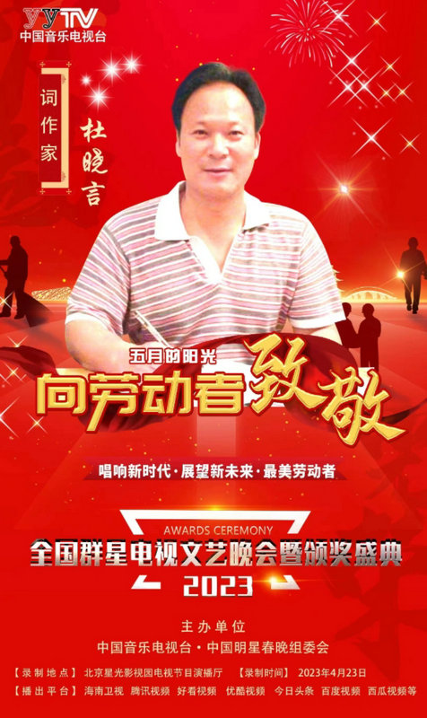 目前,項(xiàng)目處于戰(zhàn)疫情、破解難題、確保年度計(jì)劃目標(biāo)實(shí)現(xiàn)的攻堅(jiān)階段,我在做好施工新聞報(bào)道工作的同時(shí),利用業(yè)余時(shí)間創(chuàng)作的《喜迎黨的二十大組詩(shī)》、《戰(zhàn)疫組歌》、《重慶的地鐵》、《枇杷熟了你沒(méi)有來(lái)》等歌詞和歌曲,發(fā)表中國(guó)鐵建股份有限公司網(wǎng)站、重慶市音樂(lè)家協(xié)會(huì)抗疫征歌公眾號(hào)和《重慶音樂(lè)》雜志等,有的被著名作曲家譜曲推廣演唱。項(xiàng)目部全員圍著現(xiàn)場(chǎng)轉(zhuǎn),瞪起眼睛排隱患保安全、搞攻關(guān)創(chuàng)優(yōu)質(zhì)、抓協(xié)調(diào)創(chuàng)高產(chǎn),干部員工敬業(yè)愛(ài)崗的精神,不僅點(diǎn)燃了我新聞采寫的熱情,也點(diǎn)燃了我歌詞創(chuàng)作的火花,所采寫的新聞稿件標(biāo)榜《中國(guó)網(wǎng)》、《百度新聞》等國(guó)家級(jí)新聞平臺(tái),作詞歌曲《祖國(guó),我為你自豪》榮獲2023年全國(guó)群星電視晚會(huì)金獎(jiǎng),這是我憑借企業(yè)的平臺(tái),一方面用文字為項(xiàng)目服務(wù),另一方面實(shí)現(xiàn)了歌詞作家夢(mèng)的夢(mèng)想。