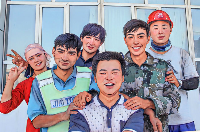 《一家親》北新路橋集團(tuán)烏魯木齊管廊項目書記張峰與職工心連心 雒煥鼎作北新路橋集團(tuán)所轄的烏魯木齊水磨溝區(qū)北新苑是一個多民族居民點(diǎn),主要為北新路橋職工家屬、離退休人員,常住人口2043人,有漢、維吾爾、回、東鄉(xiāng)、蒙古、藏等10余個少數(shù)民族。北新苑廣泛開展了座談會、運(yùn)動會、聯(lián)誼會、互學(xué)語言等民族團(tuán)結(jié)主題活動,還利用板報、橫幅、標(biāo)語、宣傳材料,開展接地氣的民族團(tuán)結(jié)宣傳教育。“板報人物栩栩如生,大家都愛看”,居民們發(fā)自肺腑地贊嘆著。北新苑成了遠(yuǎn)近文明的“民族團(tuán)結(jié)”示范小區(qū),先后涌現(xiàn)出吐爾遜娜依·肉孜、趙玉亮等一批兵團(tuán)和十一師民漢聯(lián)姻“最美家庭”。
