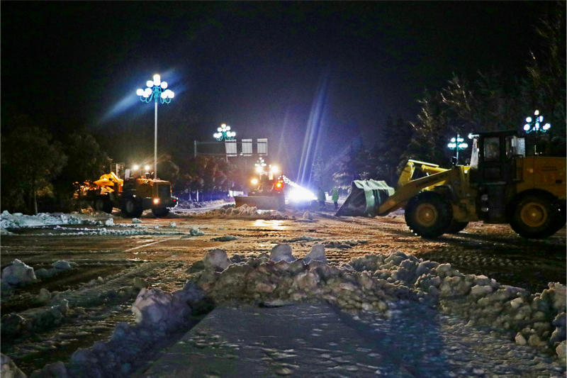 2月21日晚,大雪稍歇,在宿州市交通局的統一組織下,宿固4標項目“我是一面旗”黨員志愿服務隊、青年志愿服務隊積極響應,聯絡鏟車2輛,奔赴宿州大道等主干線進行鏟雪行動。
