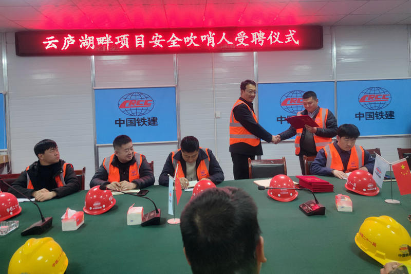 3月12日,中鐵二十一局云廬湖畔建設(shè)項(xiàng)目為6名“安全吹哨人”舉行受聘儀式,項(xiàng)目部管理人員、勞務(wù)工代表共計(jì)20人參加。