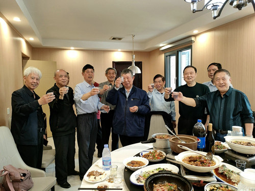 會(huì)議首先由仙桃市鐵道兵戰(zhàn)友聯(lián)誼會(huì)副會(huì)長(zhǎng)葉務(wù)生戰(zhàn)友主持,他詳細(xì)介紹了當(dāng)?shù)氐臍v史沿革、風(fēng)土人情和政治經(jīng)濟(jì)的發(fā)展等,會(huì)長(zhǎng)盧才臣會(huì)長(zhǎng)以《搭建溝通平臺(tái) 創(chuàng)造和諧穩(wěn)定》為題,向兵網(wǎng)文創(chuàng)中心的戰(zhàn)友介紹了聯(lián)誼會(huì)概況、開(kāi)展豐富多彩的聯(lián)誼活動(dòng)和扎扎實(shí)實(shí)為戰(zhàn)友辦實(shí)事等內(nèi)容。接著,是知名書(shū)法家孫雅清戰(zhàn)友給兵網(wǎng)文創(chuàng)中心和張金春“荊州市援越抗美戰(zhàn)爭(zhēng)博物館”暨“荊州市鐵道兵援越抗美戰(zhàn)爭(zhēng)博物館”贈(zèng)送的書(shū)法、鄒敢昆戰(zhàn)友為兵網(wǎng)文創(chuàng)中心來(lái)訪(fǎng)戰(zhàn)友贈(zèng)送《萬(wàn)里行吟》一書(shū)。之后是短暫的戰(zhàn)友聯(lián)歡互動(dòng),歌舞劇、詩(shī)朗誦、民歌演唱……在這期間,我們沒(méi)有忘記此行的目的:集體采訪(fǎng)盧才臣會(huì)長(zhǎng)。最后,在仙桃市戰(zhàn)友會(huì)的盛情相邀下,不喝酒的戰(zhàn)友端起了水杯,喝酒的戰(zhàn)友端起了酒杯……沔泉·蕎麥原漿酒成為了兵網(wǎng)文創(chuàng)中心次日繼續(xù)東行南昌戰(zhàn)友的送行酒!