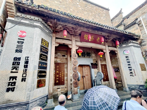 江灣的建筑布局卓具特色,一街六巷,縱橫交錯,新舊有序,千年延展,不亂方陣。且每條巷道各有個性,不見雷同,古樸優(yōu)雅,自成一景。從后龍山俯瞰,正中部位的巷道,竟構成一個碩大的"安"字。江灣的老街還保持著明清時期的風韻,街面還是那么窄,幾幢老店鋪,如培心堂、飲蘇堂、日生堂,店門還是那一塊塊拼起的木板排門,店堂里還是那老柜臺、老貨架,外墻還是那古老的封火墻,徜徉其中,我們仿佛穿行于時間隧道,仍可感受到一些古江灣明清時期的商業(yè)氣息。