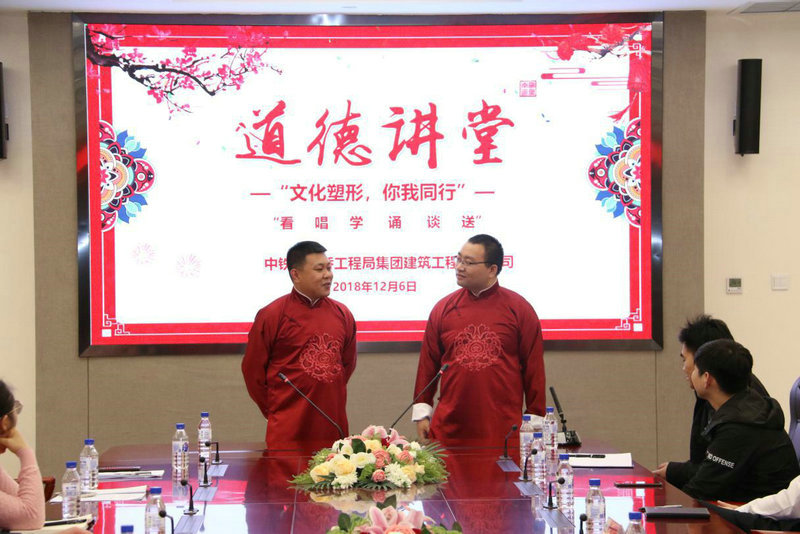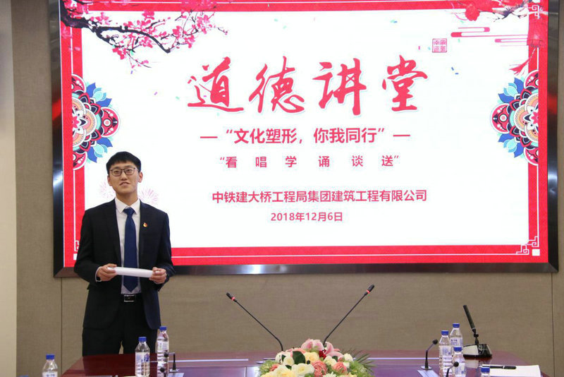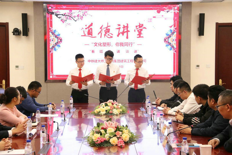 12月6日,中鐵建大橋局建筑公司在天津鐵建大廈開展了以“文化塑形,你我同行”為主題的道德講堂活動,來自公司領(lǐng)導(dǎo)班子成員、機(jī)關(guān)全體職工及公司所屬天津區(qū)域部分職工共50多人齊聲誦讀經(jīng)典、感悟道德力量。