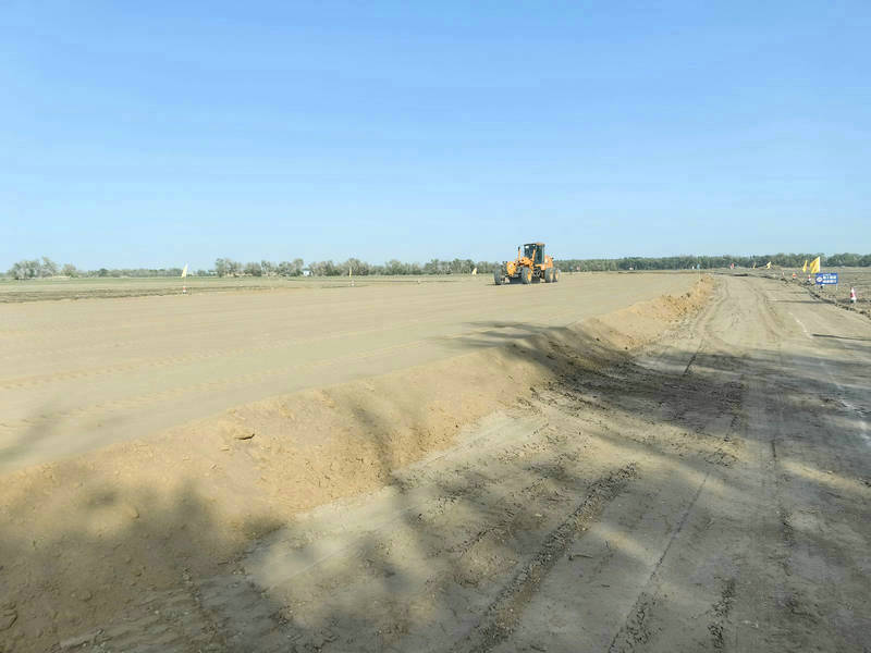 為保證試驗(yàn)段工作順利開展,項(xiàng)目部積極協(xié)調(diào)有關(guān)事項(xiàng),提前部署、靠前指揮,不斷加強(qiáng)與施工隊(duì)伍之間的配合,嚴(yán)格按照規(guī)范及各項(xiàng)施工流程開展工作,做到安全先行、務(wù)實(shí)管理、嚴(yán)把質(zhì)量。在施工過程中,現(xiàn)場(chǎng)技術(shù)人員、機(jī)械緊密配合,嚴(yán)格控制風(fēng)積沙與礫石土的運(yùn)輸、整平、碾壓等各個(gè)環(huán)節(jié),實(shí)時(shí)跟蹤指導(dǎo),嚴(yán)格把關(guān),順利完成各項(xiàng)工作,實(shí)現(xiàn)報(bào)驗(yàn)達(dá)到合格標(biāo)準(zhǔn),為后期施工提供了更精準(zhǔn)的數(shù)據(jù)支持。