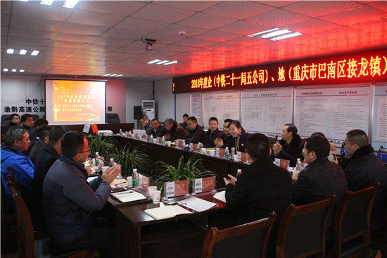 1月4日,中鐵二十一局五公司渝黔項(xiàng)目部和重慶市巴南區(qū)接龍鎮(zhèn)召開(kāi)企地共建年終總結(jié)會(huì)。巴南區(qū)人大副主任朱作芳、交委副書(shū)記陳志寬,巴南接龍鎮(zhèn)黨委書(shū)記馮天華、人大主席崔國(guó)彬;渝黔擴(kuò)能建設(shè)指揮部黨工委書(shū)記董亞輝、,第二總包部副指揮長(zhǎng)趙明;中鐵二十一局五公司黨委副書(shū)記、紀(jì)委書(shū)記任宏科等領(lǐng)導(dǎo)出席會(huì)議并講話。重慶巴南區(qū)高速公路指揮部、巴南區(qū)征地辦、巴南日?qǐng)?bào)記者、轄區(qū)駐地村黨委領(lǐng)導(dǎo)及項(xiàng)目部全體黨員干部共計(jì)30余人參加會(huì)議。