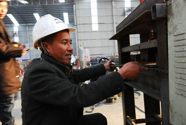 圖為馬小利調(diào)試鋼筋自動焊接設備