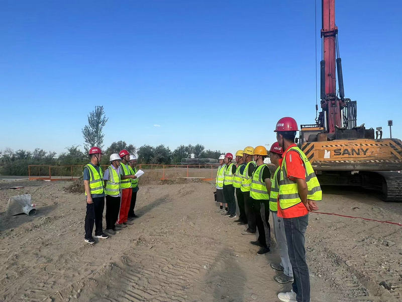 據(jù)介紹,為確保首樁施工順利進(jìn)行,第八師G335二標(biāo)項目部精心制定周密的施工方案,對施工人員進(jìn)行了詳細(xì)的技術(shù)交底和安全培訓(xùn),保障了場地平整和測量放樣等工作,嚴(yán)格按照標(biāo)準(zhǔn)化施工。業(yè)主、監(jiān)理等各方單位現(xiàn)場監(jiān)督,對原材料質(zhì)量、施工工藝等各個環(huán)節(jié)嚴(yán)格把關(guān),保證試樁安全開鉆,確保工程質(zhì)量。