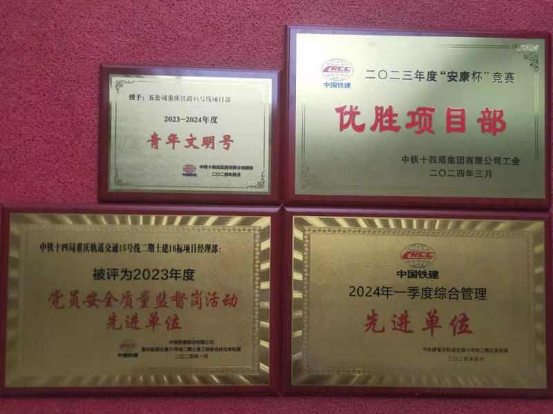 項(xiàng)目部先后榮獲第六屆“優(yōu)路杯”全國(guó)BIM技術(shù)大賽優(yōu)秀獎(jiǎng),中施企協(xié)綠色建造過(guò)程評(píng)價(jià)“三星”級(jí),重慶市建設(shè)工程施工質(zhì)量安全管理總站“揚(yáng)塵控制示范工地”,重慶市鐵路集團(tuán)年度軌道交通建設(shè)”先進(jìn)施工單位”“先鋒工地”,中鐵十四局集團(tuán)“安康杯”競(jìng)賽優(yōu)勝項(xiàng)目部,技術(shù)創(chuàng)新管理先進(jìn)單位”,“安全生產(chǎn)先進(jìn)單位”等榮譽(yù)稱(chēng)號(hào), 總之,“五亮五共”活動(dòng)有助于充分發(fā)揮黨支部的戰(zhàn)斗堡壘作用和黨員的先鋒模范作用,為重慶軌道交通15號(hào)線的建設(shè)提供堅(jiān)實(shí)保障。項(xiàng)目施工的物流園北站至井口站區(qū)間雙線盾構(gòu)提前順利貫通,兩座高架橋和路基主體工程提前完成,中梁山隧道進(jìn)出口安全優(yōu)質(zhì)高效推進(jìn)。 目前,在推進(jìn)精細(xì)化施工和“決戰(zhàn)120天,決勝年度任務(wù)”活動(dòng)的過(guò)程中,項(xiàng)目部進(jìn)一步細(xì)化方案、激勵(lì)措施、強(qiáng)化機(jī)制、明確責(zé)任等方面持續(xù)發(fā)力,真正把巴渝快軌建設(shè)成為上級(jí)單位的放心項(xiàng)目,重慶市民的滿意工程。(文/杜曉言、林赤喜 圖/楊笙峰、高花花)
