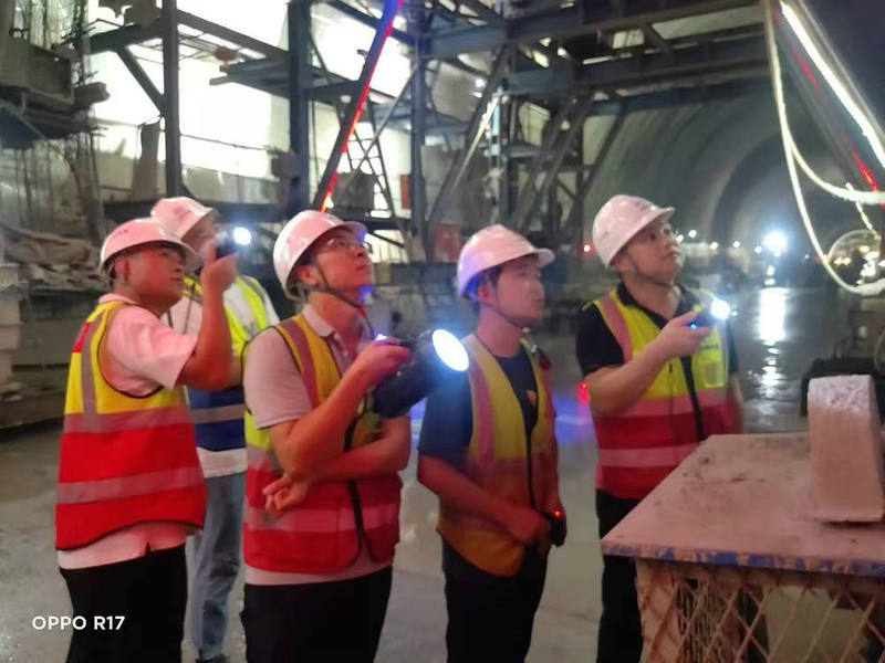 項(xiàng)目經(jīng)理、黨支部副書記阮超(右1)帶隊(duì)例行月度綜合大檢查