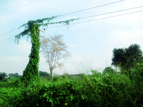 爬桿(或許在中國(guó)六七十年代可見的雜草爬電桿,在尼日利亞依然隨處可見)