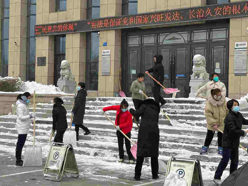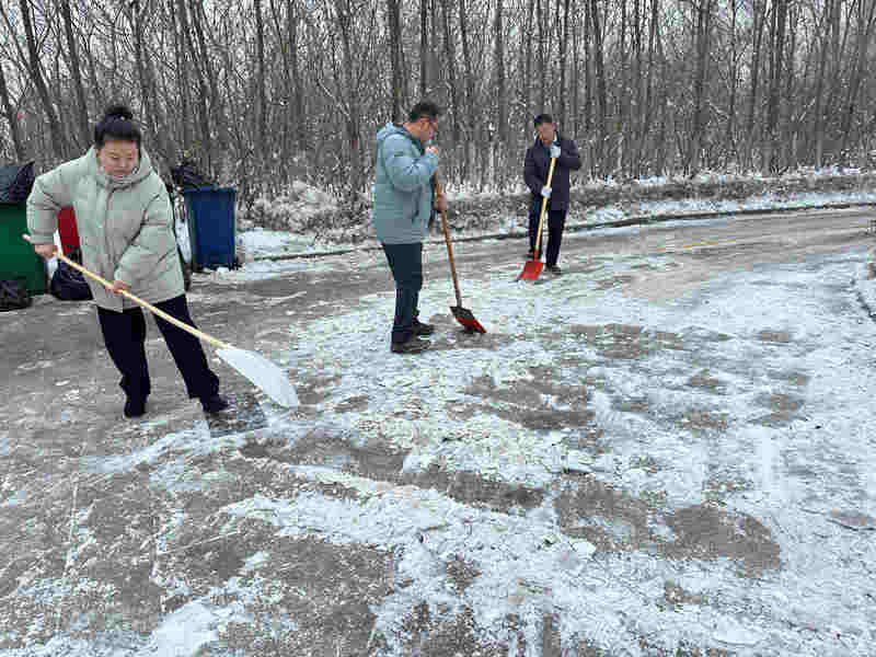 為盡快恢復(fù)道路暢通,工作人員們不顧嚴(yán)寒,齊心協(xié)力,鏟的鏟、掃的掃,干得熱火朝天。有的地方積雪被車輛壓實,清理難度極大,工作人員們便幾人一組,用鐵鍬先將積雪敲碎,再合力鏟起。他們的雙手被冰冷的工具磨得通紅,甚至磨出了水泡,但沒有一個人停下手中的動作。經(jīng)過數(shù)小時的奮戰(zhàn),北新大廈的主要道路積雪被清理干凈,為業(yè)主的出行開辟出了一條條安全通道。