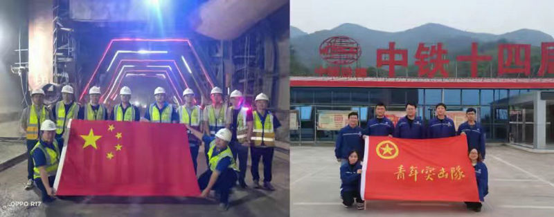 項目黨支部黨旗與青年突擊隊旗交相輝映,彰顯出攻堅克難的熱烈氣氛和豪邁決心