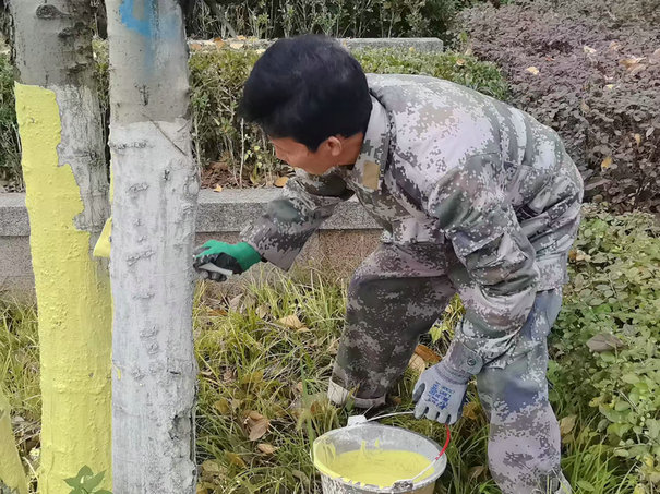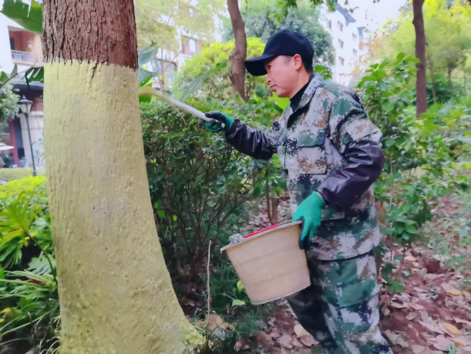 重慶合川訊(通訊員 湯英勇)隨著氣溫的逐漸下降,園林植物開始進(jìn)入冬季生長(zhǎng)休眠期,為強(qiáng)化綠化植物養(yǎng)護(hù)管理,全力確保綠化植物安全越冬,近日,冬季樹木刷白防護(hù)工作全面啟動(dòng)。宜邦物業(yè)園林工作搶抓天氣晴好的有利時(shí)機(jī),對(duì)御龍灣小區(qū)內(nèi)所有的樹木進(jìn)行涂白防護(hù)。