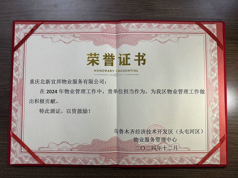 烏魯木齊訊(通訊員 馬小玲)近日,重慶北新宜邦物業(yè)服務(wù)有限公司憑借其卓越的服務(wù)品質(zhì)和專業(yè)的管理水平,在眾多同行中脫穎而出,被烏魯木齊經(jīng)濟(jì)技術(shù)開發(fā)區(qū)(頭屯河區(qū))物業(yè)服務(wù)管理中心授予“擔(dān)當(dāng)作為”先進(jìn)單位榮譽(yù)稱號(hào),這一殊榮是對(duì)該宜邦物業(yè)長(zhǎng)期以來辛勤付出和杰出貢獻(xiàn)的高度認(rèn)可。