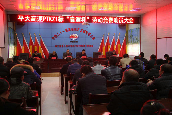 圖為勞動(dòng)競(jìng)賽會(huì)議現(xiàn)場(chǎng) 會(huì)議指出,目前項(xiàng)目施工生產(chǎn)時(shí)間緊,任務(wù)重,項(xiàng)目部要在“秦渭杯”勞動(dòng)競(jìng)賽中要統(tǒng)籌兼顧,科學(xué)組織,合理安排,保證現(xiàn)場(chǎng)人員、材料、設(shè)備供應(yīng),做好技術(shù)服務(wù)工作,全面掀起施工大干熱潮,為全面落實(shí)各項(xiàng)目標(biāo)任務(wù)而不懈奮斗。