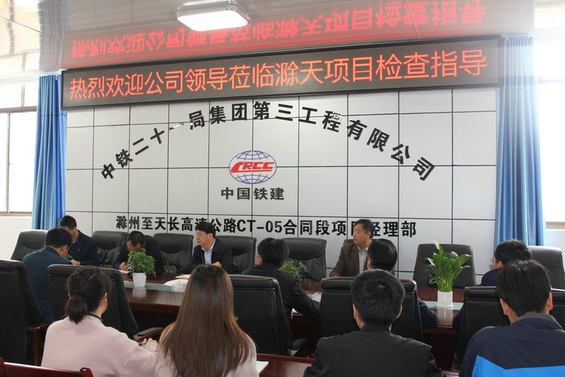 三月的皖東,鳥(niǎo)語(yǔ)花香。3月28日,中鐵二十一局三公司黨委書記、董事長(zhǎng)莊乾理到滁天高速項(xiàng)目檢查指導(dǎo)工作,總經(jīng)理助理刁曉利、辦公室主任李興軍、項(xiàng)目經(jīng)理雒曉亮、書記于喜田等陪同檢查。