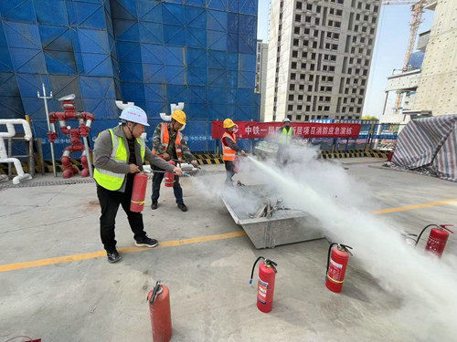 隨后在項目部施工現場開展了消防應急演練活動,現場演示了滅火器、消火栓等消防器材的正確使用方法。員工們踴躍參與實踐操作,親身體驗了滅火的過程,進一步掌握了消防器材的使用技巧。