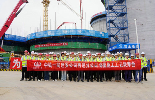 (西安訊)5月14日,中鐵一局建安公司西安建筑分公司在西安農(nóng)投15萬(wàn)噸綜合性糧食倉(cāng)儲(chǔ)基地(藍(lán)田)項(xiàng)目順利舉辦滑模施工工藝現(xiàn)場(chǎng)觀摩會(huì)。公司相關(guān)部門(mén)負(fù)責(zé)人及專家組成員,分公司領(lǐng)導(dǎo)以及項(xiàng)目部負(fù)責(zé)人、各項(xiàng)目安全、技術(shù)管理人員代表共計(jì)50人參加活動(dòng)。