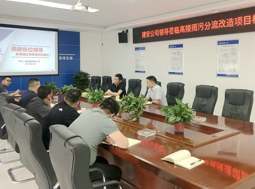 在項目會議室,楊志明聽取了項目負責人關于項目前期策劃、項目概況、現(xiàn)場調查及施工進度、勞務人員組織、物資設備管理、安全質量管控等方面的匯報。