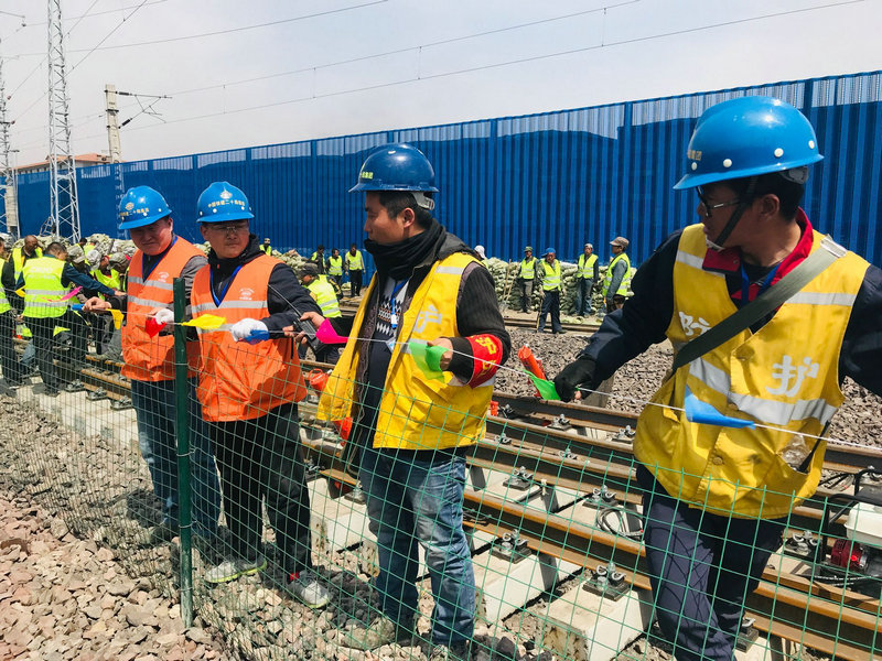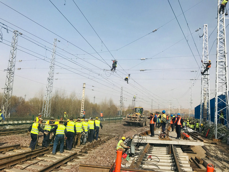 另悉,此次封鎖施工,是該項(xiàng)目封鎖施工開展以來,用工量最多一次站改施工。為確保施工安全正點(diǎn),他們嚴(yán)格按照既定施工方案及專項(xiàng)安全防護(hù)方案進(jìn)行封鎖施工,人員、機(jī)械、設(shè)備在封鎖前兩小時(shí)就位準(zhǔn)備。封鎖施工命令下達(dá)后,210余名參戰(zhàn)人員快速就位,仔細(xì)核對(duì)各項(xiàng)技術(shù)參數(shù),落實(shí)技術(shù)方案,統(tǒng)籌部署各項(xiàng)工作,確保各個(gè)施工環(huán)節(jié)的時(shí)點(diǎn)控制責(zé)任到崗、精確到人。各施工作業(yè)隊(duì)人員克服作業(yè)面小、工程量大、施工環(huán)節(jié)復(fù)雜等困難,迅速投入到封鎖施工當(dāng)中。他們吊枕、扒砟、拆除道岔及線路、橫移道岔、回砟、搗固、防護(hù)等一系列交叉作業(yè),各道工序都嚴(yán)格按照預(yù)定方案完成,施工過程防護(hù)到位、安全可控,人員、機(jī)械作業(yè)有條不紊、相互配合。這樣經(jīng)過180分鐘安全、緊張、有序、正點(diǎn)地完成了第七階段封鎖施工任務(wù)。
