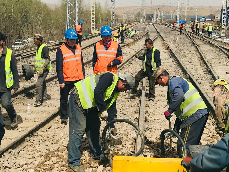 本次封鎖施工是開通同煤岢嵐煤炭專用線的重要環(huán)節(jié),也是項(xiàng)目最后一次Ⅲ級(jí)封鎖施工,從4月22日9:00時(shí)給點(diǎn),到12:00時(shí)封鎖結(jié)束,計(jì)180分鐘。主要施工項(xiàng)目為線路整修,小機(jī)搗固。建設(shè)者們?cè)谑┕?zhǔn)備中,仔細(xì)核對(duì)各項(xiàng)技術(shù)參數(shù),業(yè)務(wù)骨干反復(fù)研究技術(shù)方案,統(tǒng)籌部署落實(shí)各項(xiàng)工作,確保各個(gè)施工環(huán)節(jié)的時(shí)點(diǎn)控制責(zé)任到崗、精確到人,確保封鎖期間的人員、設(shè)備安全、和施工任務(wù)的順利達(dá)成。