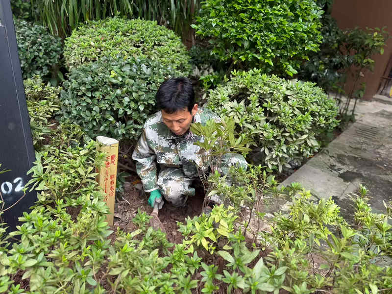 施工中,物業(yè)工作人員以“分區(qū)負責、專業(yè)協(xié)作”模式高效推進。先行疏松土壤,為植物生長打牢基礎,結合區(qū)域光照、濕度等微環(huán)境規(guī)劃布局,最后嚴格按規(guī)范操作保障成活率并跟進澆水、固定等后續(xù)管理,全過程兼顧生態(tài)平衡與景觀美學,盡顯物業(yè)服務精細化水平。