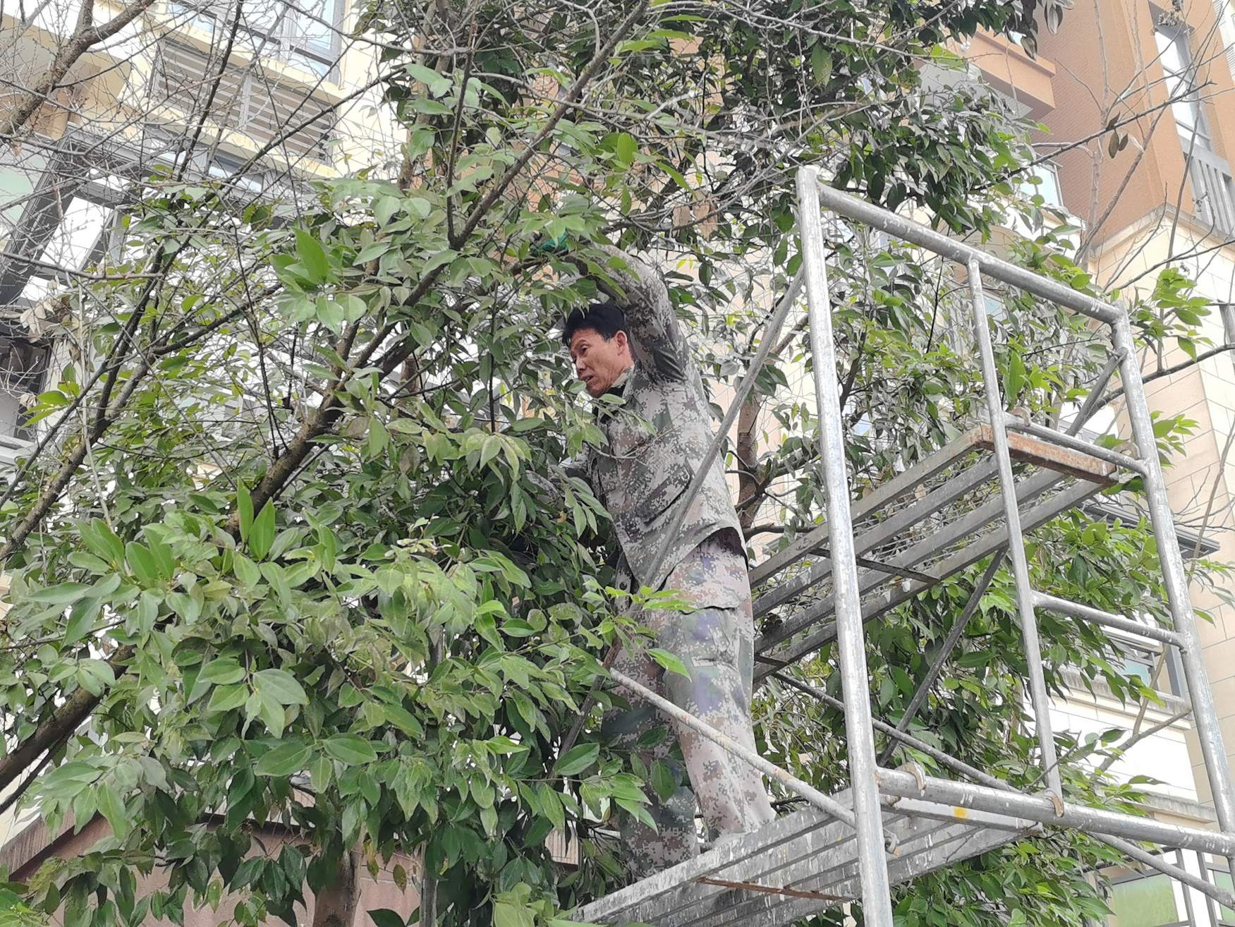 “修剪下來的枝條要及時(shí)清運(yùn),不能影響業(yè)主通行和小區(qū)環(huán)境。”針對(duì)修剪產(chǎn)生的大量枝葉,物業(yè)采用“隨剪隨清、日產(chǎn)日清”的作業(yè)模式,專門安排保潔人員同步清理路面枝條碎屑,分類打包后及時(shí)轉(zhuǎn)運(yùn),確保施工區(qū)域環(huán)境整潔、道路通暢,將對(duì)業(yè)主日常生活的影響降至最低。不少業(yè)主路過時(shí)紛紛駐足點(diǎn)贊:“師傅們干活又專業(yè)又利索,剪完之后樹木看著整齊多了,走路也不用擔(dān)心樹枝擋著,心里更踏實(shí)了。”