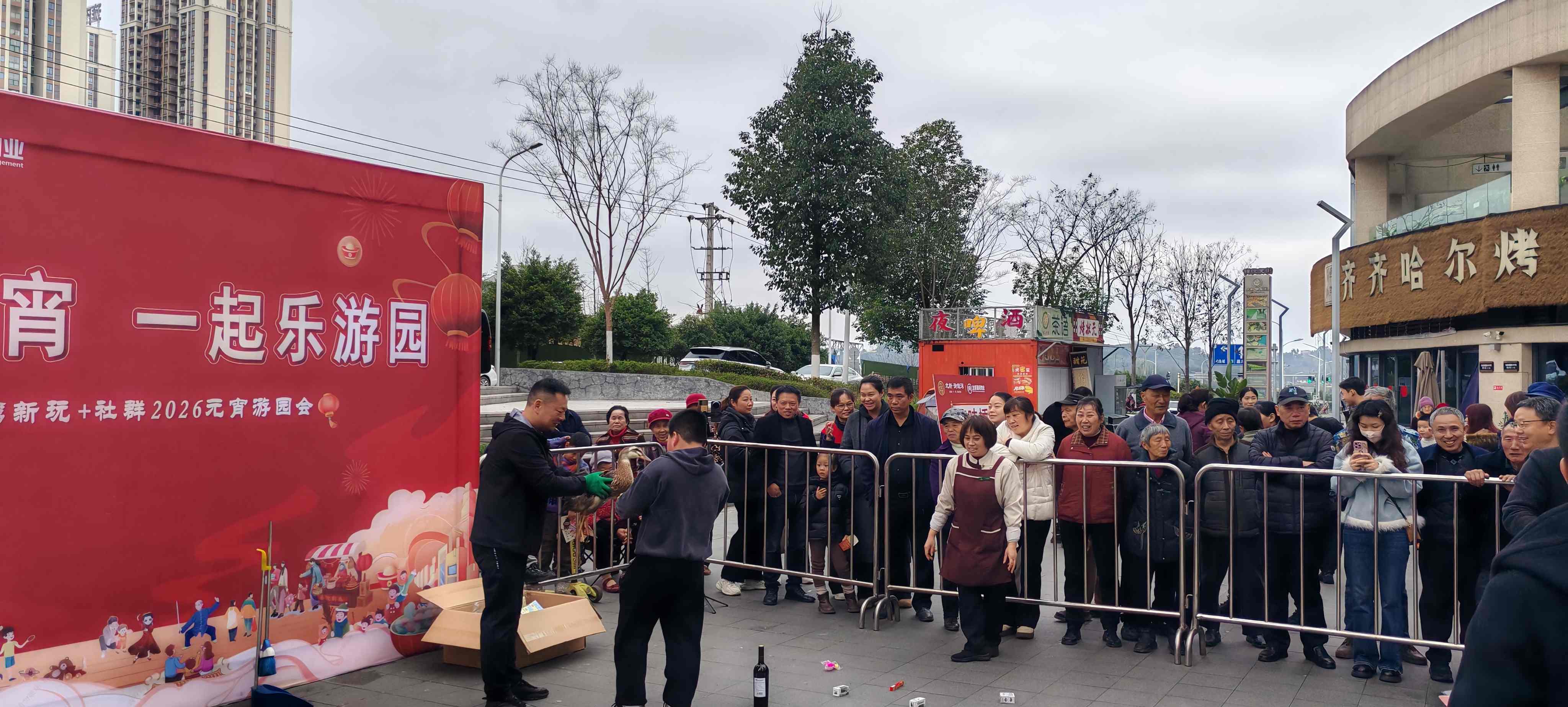 除免費(fèi)派送湯圓外,現(xiàn)場(chǎng)同步設(shè)置猜燈謎、捶丸、夾元宵等傳統(tǒng)民俗互動(dòng)環(huán)節(jié),業(yè)主踴躍參與、歡聲笑語不斷。集章兌換實(shí)用禮品,讓大家在體驗(yàn)民俗樂趣中收獲驚喜。本次活動(dòng)亮點(diǎn)環(huán)節(jié)套鴨子備受追捧,鮮活鴨子整齊陳列,業(yè)主有序排隊(duì)、凝神投擲,歡呼陣陣、高潮迭起,幸運(yùn)業(yè)主滿載而歸,歡樂與喜慶氛圍拉滿。