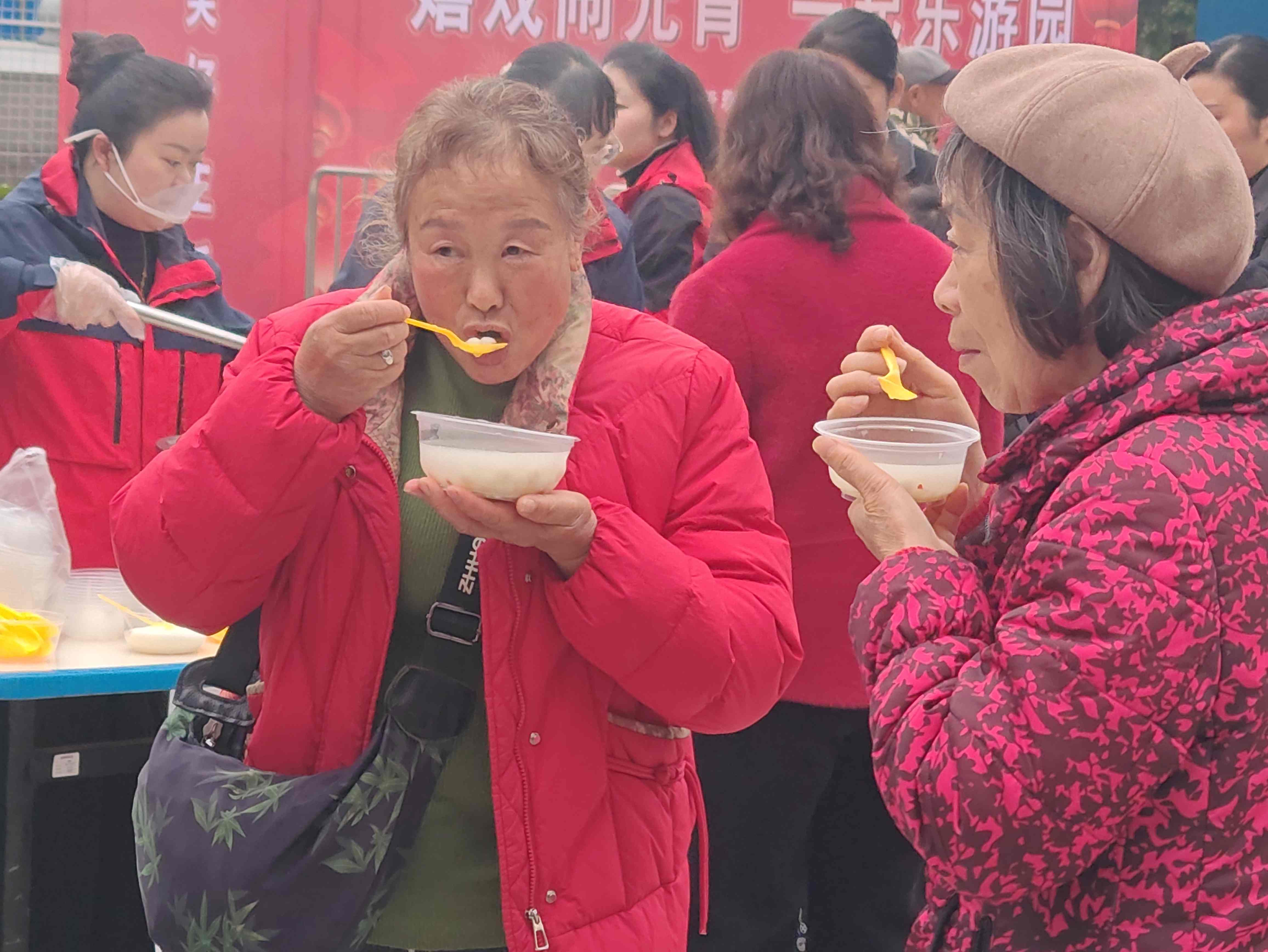 活動(dòng)現(xiàn)場(chǎng)暖意融融、秩序井然。物業(yè)工作人員身著統(tǒng)一紅色工裝,早早布置場(chǎng)地、分工協(xié)作,精心煮制湯圓。一鍋鍋圓潤(rùn)飽滿的湯圓出鍋后,工作人員快速分裝,逐戶送到業(yè)主手中,伴隨“小心燙、元宵快樂、闔家團(tuán)圓”的溫馨叮囑,甜糯暖意直達(dá)人心。老年業(yè)主連連稱贊,年輕業(yè)主拍照分享、鄰里互動(dòng)升溫,小區(qū)處處洋溢著喜慶與溫情。