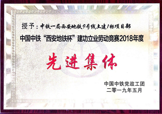 中國中鐵“西安地鐵杯”勞動競賽先進集體獎牌