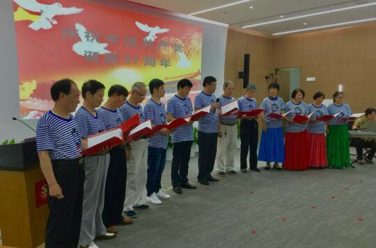 圖四、上海地鐵302標項目部員工積極融入到當(dāng)?shù)厣鐓^(qū)慶祝建黨97周年活動中來,詩朗誦《贊歌獻給黨》