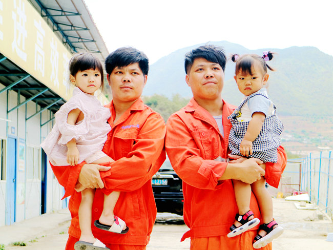 請(qǐng)過假,我們沿著逶迤的盤山便道,行駛近一個(gè)小時(shí),來到了弟弟王縣偉所在的新華隧道2號(hào)斜井工區(qū)。聽說哥哥、嫂子帶著孩子要過來,早就等在了駐地的門口。兩家六口見了面,就別提多開心了。還真別說,這哥兒倆長(zhǎng)得還真像,發(fā)型、膚色、身高、口音和笑容,甚至連兩家的孩子都長(zhǎng)得相像。