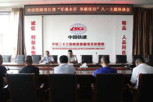 一日為兵,終身為伍;卸下軍裝,軍魂依舊。8月1日,在這神圣的日子,哈佳鐵路項(xiàng)目部為退役軍人職工精心準(zhǔn)備了一次“軍魂延續(xù),奉獻(xiàn)依舊”主題座談會(huì),讓這些退役老兵坐在一起,感懷軍隊(duì)生涯,暢談崢嶸歲月,回顧退伍后在中鐵二十三局集團(tuán)延續(xù)軍魂,依舊為國家奉獻(xiàn)的工作歷程。他們或是征拆主任、安質(zhì)部部長,或是后勤管理、行車司機(jī),還有安全防護(hù)、線路工人,無論身在何種職位,他們都充分發(fā)揚(yáng)著軍人的優(yōu)良傳統(tǒng)和作風(fēng),盡其所能,保持和發(fā)揚(yáng)革命本色,為項(xiàng)目發(fā)展貢獻(xiàn)力量。