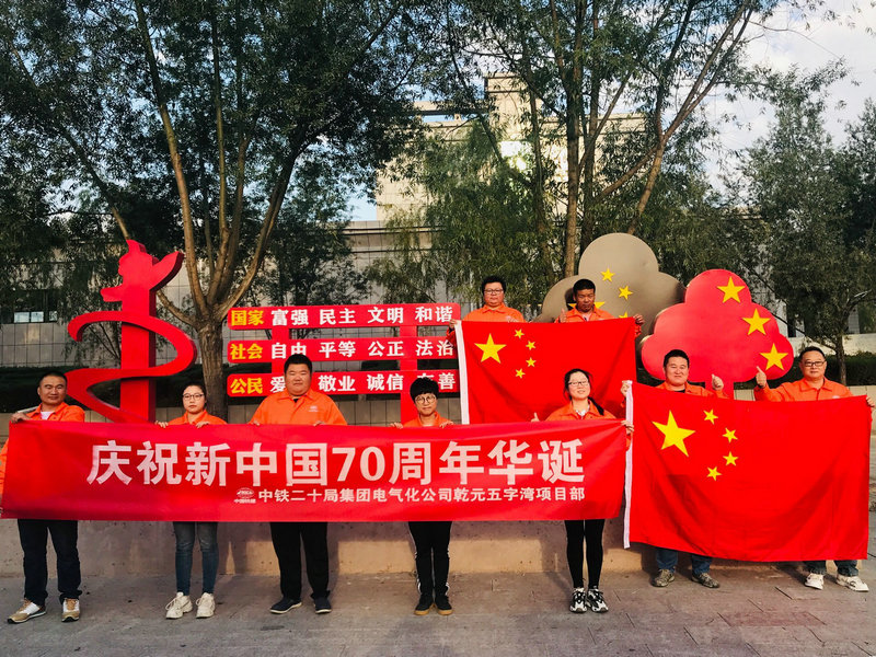 本站府谷訊(記者張明)9月23日,中鐵二十局集團(tuán)電氣化公司乾元五字灣鐵路項(xiàng)目黨支部為慶祝新中國(guó)70華誕,組織開展了“祝福祖國(guó),我與國(guó)旗同框”主題活動(dòng),引導(dǎo)和激勵(lì)大家與時(shí)代同發(fā)展、與祖國(guó)共奮進(jìn),立足崗位開拓創(chuàng)新、干事創(chuàng)業(yè)。項(xiàng)目黨員、團(tuán)員、職工代表和農(nóng)民工帶著燦爛的笑臉同鮮艷的五星紅旗合影,傳遞出了堅(jiān)定不移的愛國(guó)熱情,映照出了對(duì)祖國(guó)繁榮昌盛的真摯祝福。