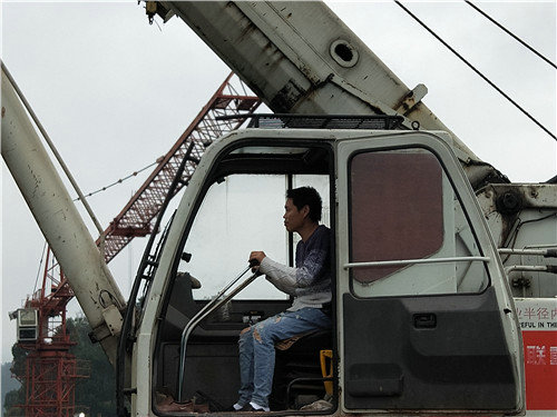 離地?cái)?shù)十米的T梁上,老馬正對(duì)吊車(chē)進(jìn)行檢查。他一邊檢查一邊對(duì)我說(shuō):“在開(kāi)始工作前不檢查不行,這不但是對(duì)自己負(fù)責(zé),也是對(duì)別個(gè)(其他人)負(fù)責(zé)。有些吊車(chē)司機(jī)會(huì)跳過(guò)這一環(huán)節(jié)直接開(kāi)始吊運(yùn),萬(wàn)一出了問(wèn)題就追悔莫及了。”他繞著吊車(chē)走圈子,逐一檢查支腿,又繞回車(chē)前對(duì)吊鉤、鋼絲繩等部位進(jìn)行了認(rèn)真檢查。之后,他又目測(cè)吊車(chē)與被吊物的距離并和T梁上的管理員老郭交流起今天的工作任務(wù),還時(shí)不時(shí)就具體問(wèn)題提出疑惑和建議。把每個(gè)細(xì)節(jié)都確認(rèn)后,老馬才坐進(jìn)駕駛室。他嫻熟地運(yùn)用著操縱桿,目光專(zhuān)注、神色認(rèn)真。我也不再搭話,走遠(yuǎn)避開(kāi)。吊車(chē)緩緩運(yùn)轉(zhuǎn),吊臂伸長(zhǎng),吊鉤下放,老馬的工作開(kāi)始了。