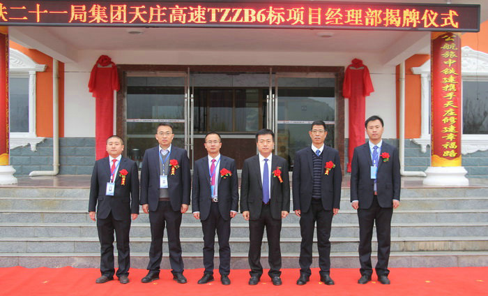 揭牌儀式上,中鐵二十一局集團天莊高速TZZB6標項目總工趙強向大家介紹了項目工程概況。項目常務副經(jīng)理柳吉煥宣讀項目成立文件,并代表項目部鄭重承諾:在今后的項目建設中將始終秉承“逢山鑿路,遇水架橋,鐵道兵前無險阻;風餐露宿,沐雨櫛風,鐵道兵前無困難”的鐵道兵精神,按照“團隊協(xié)作、永爭第一”的目標要求,以及精益求精的工匠精神,抓征地拆遷,確保標段率先開工;抓安全生產(chǎn),確保平安工地建設;抓工程質(zhì)量,確保創(chuàng)建品質(zhì)工程;抓環(huán)水保管理,確保綠色生態(tài)文明;抓工期管理,確保項目按期完工;抓基層黨建和反腐倡廉,確工程優(yōu)質(zhì)隊伍優(yōu)秀干部優(yōu)良。堅決按照“高起點準備、高效率施工、高標準建成”的要求履行好駐地央企社會責任,建設好家門口工程。