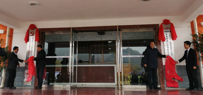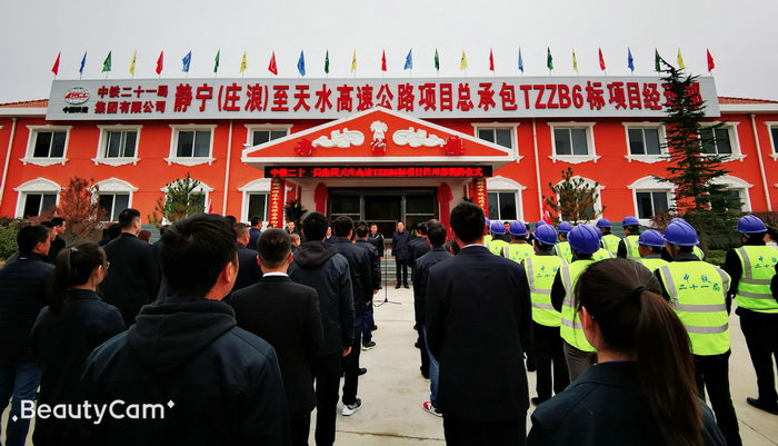 隨后,在煙花禮炮聲及現(xiàn)場貴賓、嘉賓及項目部全體職工、工區(qū)代表等壹百多人的見證下,清水縣縣委副書記、縣長馬越垠、公航旅天莊公司總經(jīng)理辛延甫、清水縣縣委常委、副縣長秦永斌、中鐵二十一局三公司副總經(jīng)理魏惠民共同為中鐵二十一局集團天莊高速總包(TZZB)6標項目部揭牌。揭牌儀式結(jié)束后,項目部組織出席揭牌儀式的各位貴賓、嘉賓參觀了項目部駐地,并組織觀看了企業(yè)宣傳片。