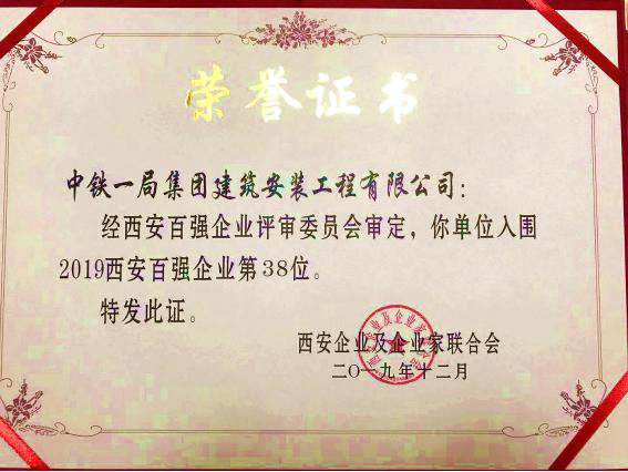 (西安訊)近日,經(jīng)西安市百強(qiáng)企業(yè)評審委員會審定,中鐵一局建安公司入圍2019年西安百強(qiáng)企業(yè)第38位。