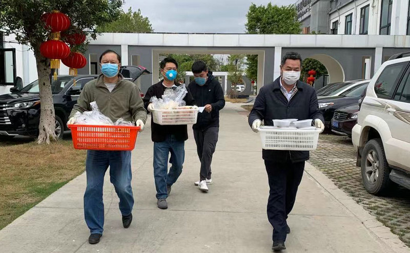 春節(jié)后返程人員的隔離觀察防護(hù)是一件大事,但隔離期間的送餐工作也不容小視,一方面要滿足一日三餐的正常需求,另一方面也要做好送餐人員與隔離人員之間的雙方防護(hù),正當(dāng)愁眉不解之時(shí),總承包部值班領(lǐng)導(dǎo)梁興樸和李瑞華一商量:“排個(gè)序吧,大家一個(gè)都不能少,但是,要從領(lǐng)導(dǎo)做起、從黨員做起。”于是,在值班人員中,副總、部長(zhǎng)、段長(zhǎng)、副部長(zhǎng)等依次排序,每人輪流送餐,送餐工作成了一種自覺(jué)行為。隨著后來(lái)返程人員逐漸增多,一個(gè)人不夠了,怎么辦,不用急,也不用招呼,主動(dòng)幫忙人的還真不少,大家齊心協(xié)力,盛飯的盛飯、添菜的添菜,端湯的端湯,三下五除二,把為隔離人員送餐當(dāng)作了一件快樂(lè)的工作。