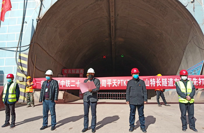 圖為項目辦領(lǐng)導(dǎo)與建設(shè)者在貫通點祝賀左貫通 該隧道自2016年4月10日開工建設(shè)以來,PTKZ1標(biāo)項目充分發(fā)揚團結(jié)和諧、戰(zhàn)斗有力、百折不撓、永爭第一的鐵道兵精神和改革創(chuàng)新、精益求精、精細(xì)管理的“工匠”精神,堅持機械化施工,采用新工藝、新方法,引進(jìn)國際先進(jìn)的“聚能水壓爆破新技術(shù)”,克服了關(guān)山地質(zhì)構(gòu)造復(fù)雜、圍巖軟弱破碎、進(jìn)口端淺埋段下穿304省道、工程材料短缺、關(guān)山特殊極端氣候、雪災(zāi)、洪災(zāi)、新冠疫情等重重困難,尤其是今年初在新型冠狀病毒肆虐神州大地的特殊時期,PTKZ1標(biāo)項目關(guān)山隧道斜井架子隊不畏艱辛,勇于擔(dān)當(dāng),科學(xué)組織,周密部署,嚴(yán)格防控,春節(jié)期間繼續(xù)保持正常施工,確保了隧道左洞早日安全順利掘進(jìn)至分界里程,為關(guān)山隧道全面貫通奠定了堅實基礎(chǔ),也為全線其他各標(biāo)段后續(xù)施工樹立了榜樣,很好的發(fā)揮了駐甘央企的示范和引領(lǐng)作用。中鐵二十一局三公司副總經(jīng)理、項目負(fù)責(zé)人魏惠民在隧道左洞順利打到分界里程之際,即興賦詩一首:“鐵軍不畏關(guān)山難,萬米長隧身手顯。洞口穿越淺埋層,洞內(nèi)再斗軟巖層。雪災(zāi)洪災(zāi)懼畏懼,新冠病毒亂又添。四年艱辛風(fēng)雨路,今日分界戰(zhàn)旗舞”。真實道出了PTKZ1標(biāo)項目在關(guān)山隧道施工道路中經(jīng)歷“九九八十一難”取得“真經(jīng)”的不易。