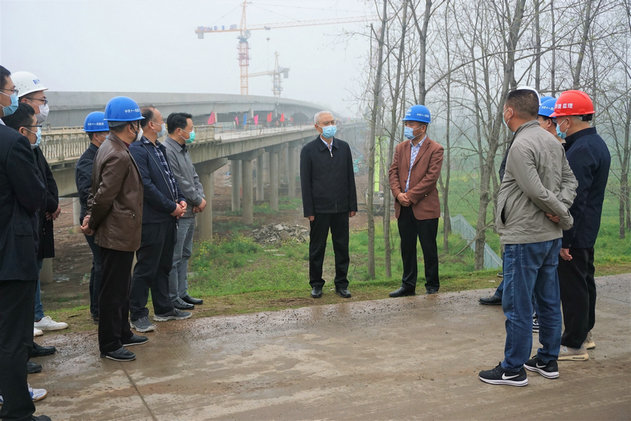 在施工現場,何光中書記高度肯定了項目部在萬城大橋拆除新建、復工防疫等方面的工作,贊揚他們“展現了國企的實力和鐵軍的作風”。何光中書記強調:疫情防控和復工復產工作要形成“組合拳”,疫情防控不能松懈,還要加大復工力度,要把錯過的時間“搶”回來,將落下的進度“奪”回來,早日完成318國道荊州段擴建工程的全面貫通。