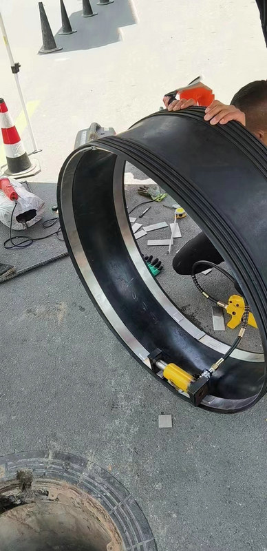 管道非開挖局部修復(fù)不銹鋼雙漲圈雙漲環(huán)工藝是專門用于大口徑管道(DN600mm-DN3000mm)接口錯位或滲漏的非開挖修復(fù)技術(shù),修復(fù)質(zhì)量高、施工便捷、簡便、工期短、實用性強,設(shè)計合理施工不受地面交通、環(huán)境溫度的影響。不銹鋼雙脹圈使用新型材料,現(xiàn)有產(chǎn)品比原有材料更加輕便,操作起來更為簡單,輕松,適用管材:混凝土管、玻璃纖維管、鋼管、鑄鐵管、塑料管、陶土管。不銹鋼雙漲圈(雙漲環(huán))根據(jù)管道內(nèi)徑,首先定制不銹鋼壓條和橡膠止水帶,然后進入管道安裝,先手工固定橡膠止水帶,通過擴張器,用不銹鋼條壓住橡膠止水帶,從而完成管道局部防滲漏修復(fù),再對管道滲漏處進行注漿處理。