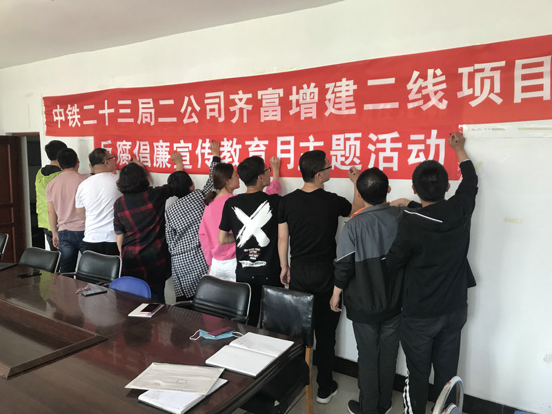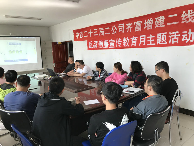 為進(jìn)一步增強(qiáng)項(xiàng)目干部的個(gè)人修養(yǎng)和廉潔自律的自覺性,筑牢拒腐防變的思想道德防線,促進(jìn)項(xiàng)目干部的廉潔守法,更好推動(dòng)“反腐倡廉宣傳教育月”活動(dòng)的進(jìn)展,5月24日中鐵二十三局集團(tuán)二公司齊富項(xiàng)目部組織項(xiàng)目全體黨員、群眾干部集中觀看了黨風(fēng)廉政警示教育片《動(dòng)漫講規(guī)矩》。