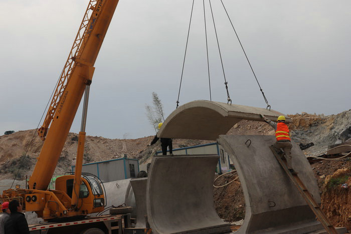 圖為工人正在吊裝涵洞預制構(gòu)件裝配式涵洞的應(yīng)用,改變了過去涵洞點多線長地形條件限制、工程質(zhì)量控制難度大、安全質(zhì)量監(jiān)管困難的弊端,減少了對周圍環(huán)境的污染,縮短了作業(yè)時間,有效提高施工效率,對提升涵洞品質(zhì)起到至關(guān)重要的作用。
