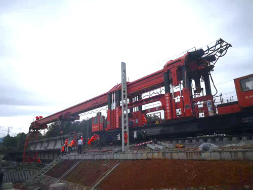 據(jù)悉,渝懷鐵路二線是國家中長期鐵路網(wǎng)規(guī)劃的重要建設項目。它是在既有渝懷鐵路旁增建,其中在建的涪陵至秀山段起于渝懷鐵路涪陵站,止于秀山,全長約339公里。中鐵一局鋪架分部主要承擔著該條鐵路正線鋪軌306公里,站線鋪軌54公里、架梁920.5孔、鋪道岔236組、站改車站29個等系列施工任務。