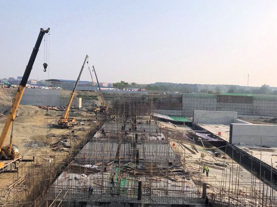 施工現(xiàn)場 據(jù)悉,該閘基設置8孔泄水閘孔,結構釆用開敞式平底堰,閘室順水流方向長17m,寬15 m,底板采用C25鋼筋砼,厚度2.5m,整個閘基澆筑混凝土6164方。德陽項目部自勞動競賽活動以來,嚴抓防疫、施工兩條線不放松,建立專項施工方案,配足配強人、機、物,精心組織,積極動員參建員工工作士氣,多舉措確保現(xiàn)場施工安全高效,為安全度汛奠定了基礎。