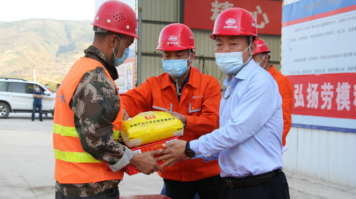 向施工班組發(fā)放節(jié)日慰問品