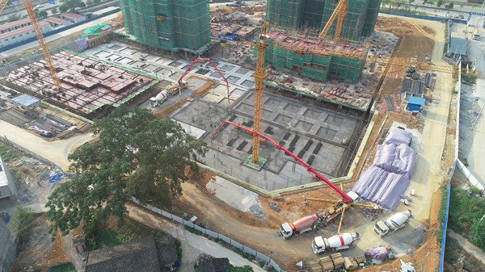 (廣西崇左訊)5月1日12時,中鐵七局四公司承建的崇左棚改一期項目部完成A1地塊1-6號樓筏板基礎1967立方米混凝土澆筑,正式進入工程主體結構施工沖刺階段。
